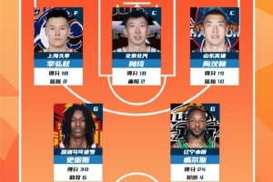 体育资讯1月7日讯 今天,CBA官方公布了常规赛第11轮最佳阵容,李弘权、周琦、陶汉林、史密斯和威尔斯入选。