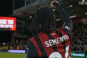 体育资讯01月08日讯 伯恩茅斯本轮3-2绝杀热刺,即将去曼城的塞梅尼奥第95分钟绝杀。赛后,塞梅尼奥向球迷一直鼓掌、挥手。