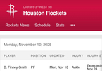 芬尼史密斯 - 预计将至少缺席至11月24日