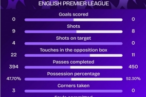 下一篇: 阿森纳0-0利物浦全场数据:射门9-8,射正4-0,控球率48%-52%