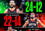 火箭本赛季前36场,战绩22胜14负,暂时排名西部第7。上赛季同期,他们战绩是24胜12负。