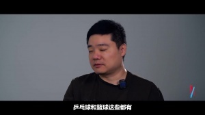 丁俊晖:最早过有玩很多的运动嘛,然后有打羽毛球啊,乒乓球和篮球这些都有,包括游泳这些,因为还有呃,我父亲最早其实是呃,他是比较喜欢体操的,那会儿的条件就是家里会有那个吊环嘛,他和朋友在家里一起玩各种动作,其实最早他的心心里想的就是把我呃从小培养成一个体操运动员。