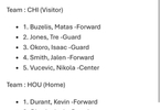 公牛vs火箭 首发: